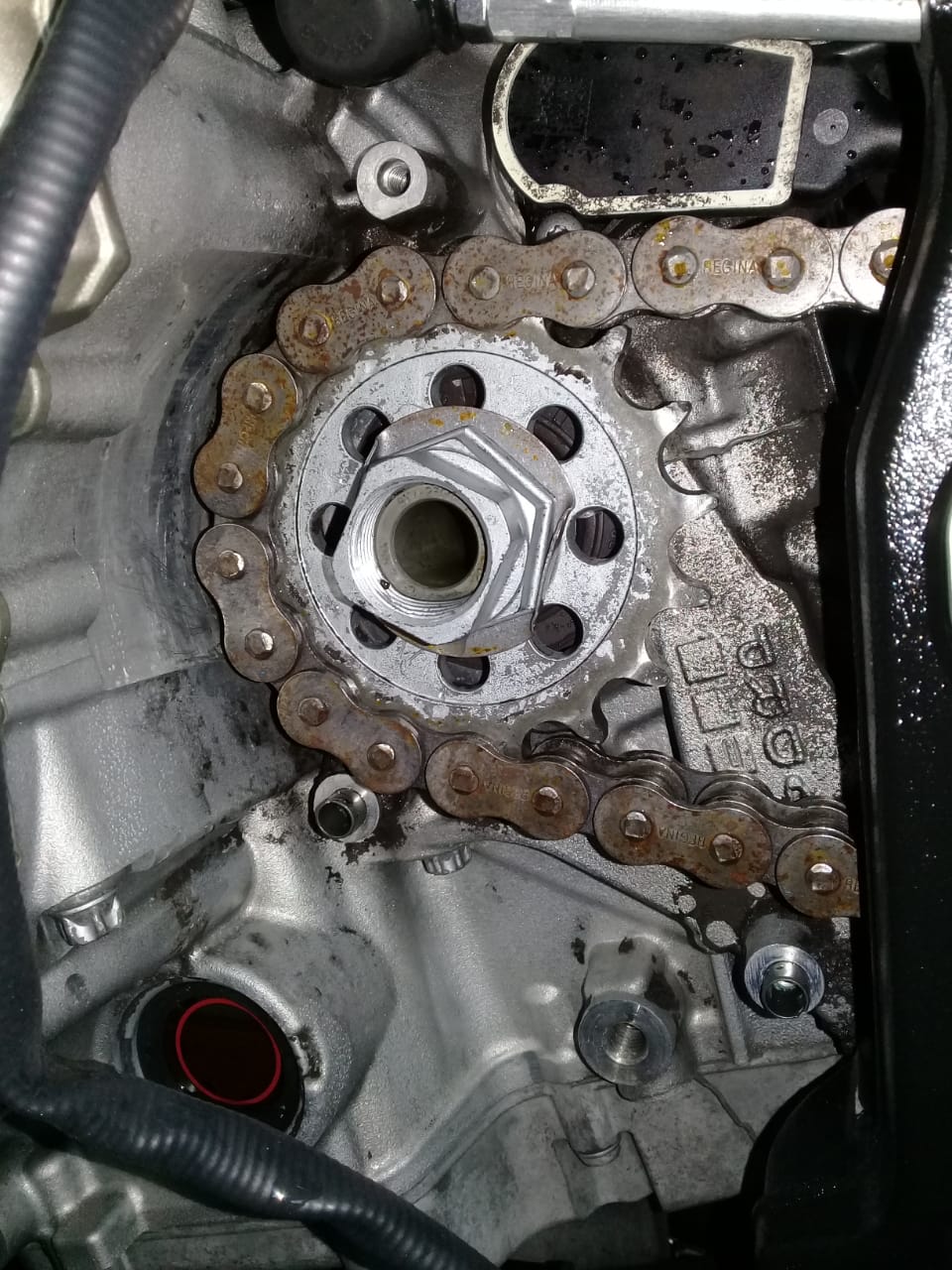 Troca de relação, suporte de placa e reaperto geral.